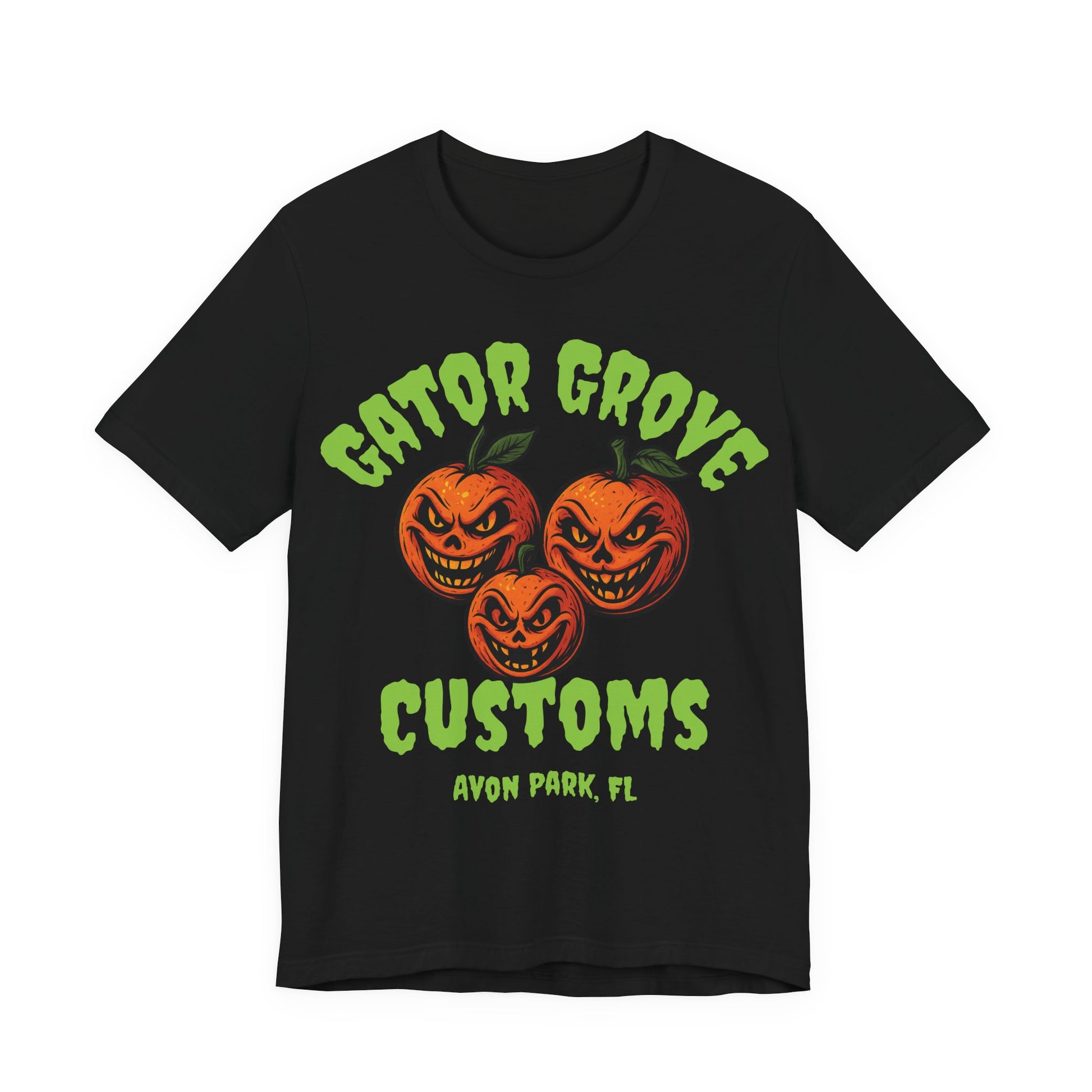Get in the Halloween spirit with the official Gator Grove Customs tee! Featuring three wicked jack-o’-lanterns representing our family and bold neon lettering; just the way we like it. This shirt is equal parts spooky and stylish. Perfect for haunted nights, pumpkin patch trips, or just showing off your Florida swamp vibes.